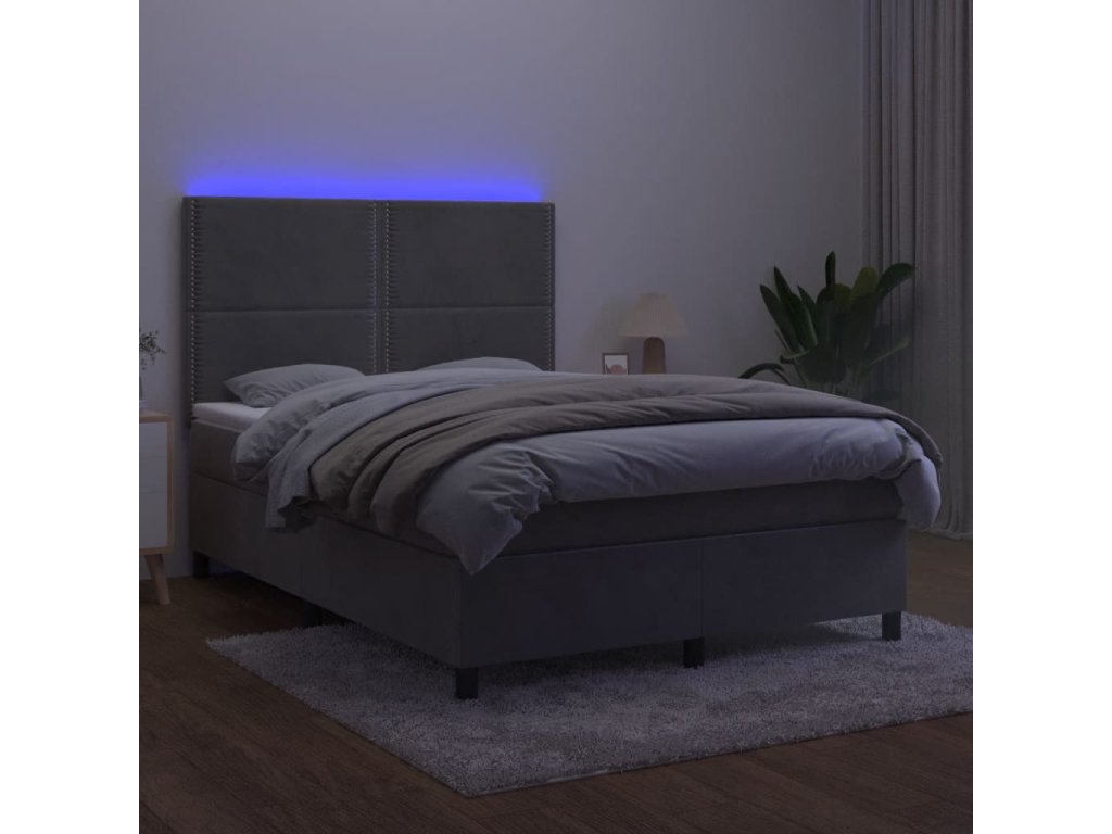 vidaXL Posteľ boxsping s matracom a LED bledosivá 140x190 cm zamat