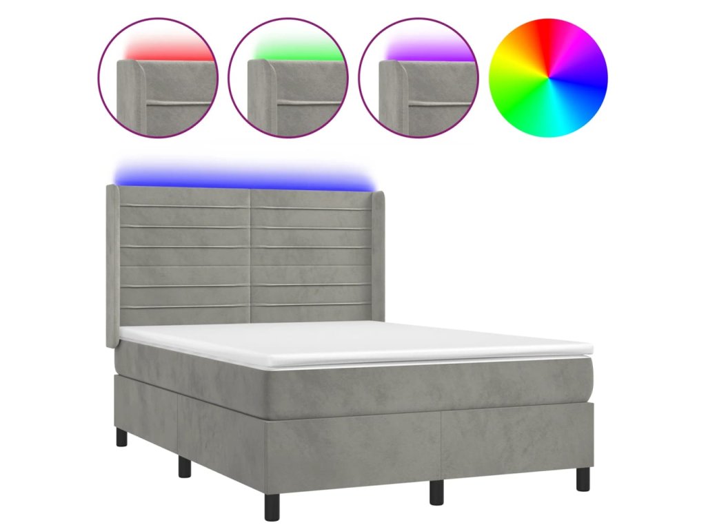 vidaXL Posteľ boxsping s matracom a LED bledosivá 140x190 cm zamat