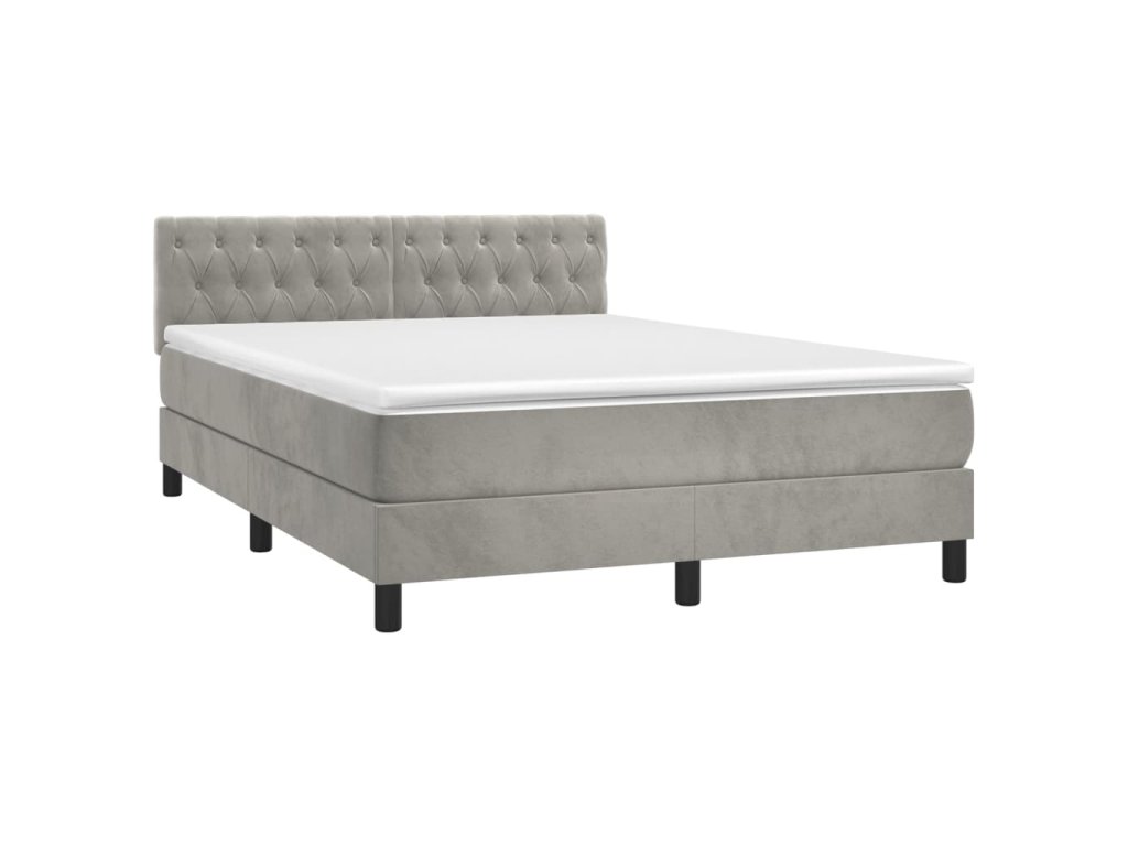 vidaXL Posteľ boxsping s matracom a LED bledosivá 140x190 cm zamat
