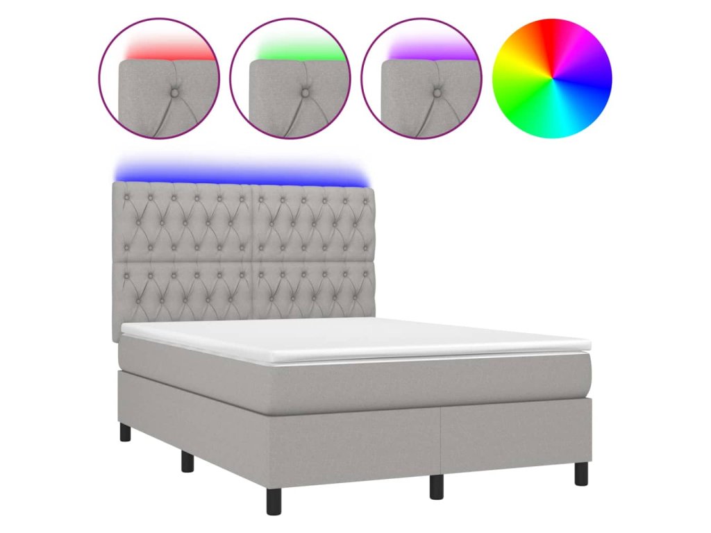 vidaXL Posteľ boxsping s matracom a LED bledosivá 140x200 cm látka