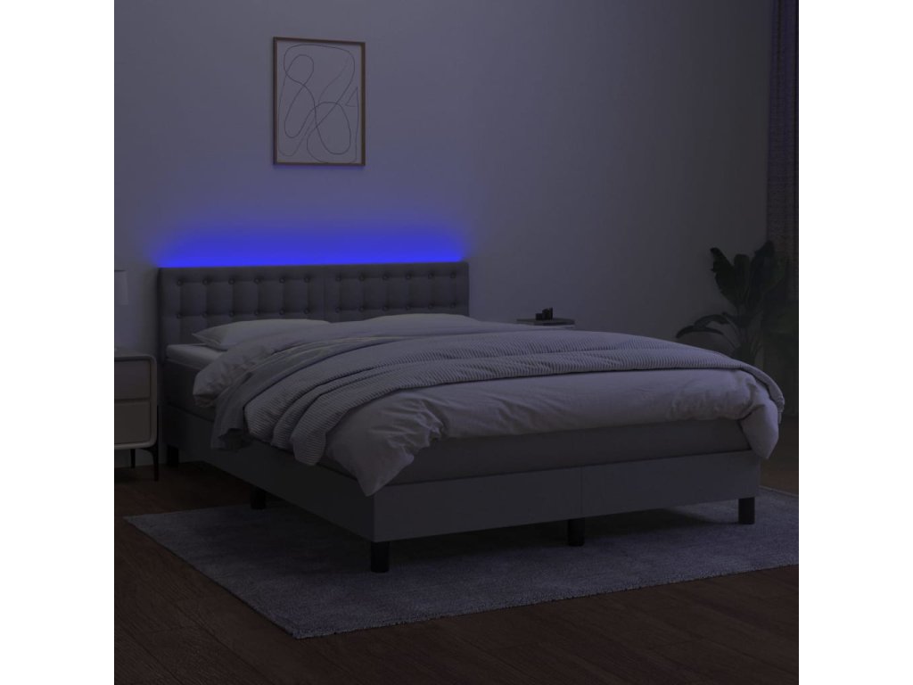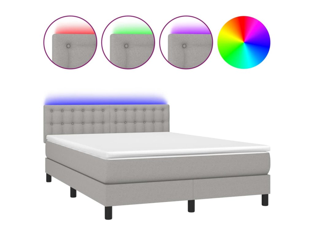 vidaXL Posteľ boxsping s matracom a LED bledosivá 140x200 cm látka