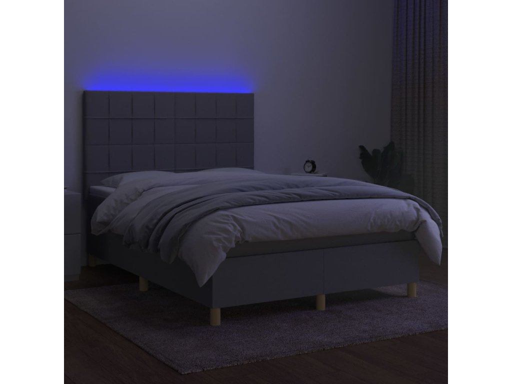 vidaXL Posteľ boxsping s matracom a LED bledosivá 140x200 cm látka