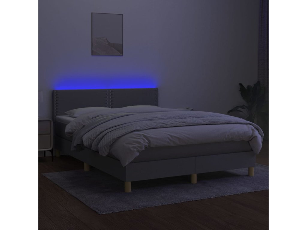 vidaXL Posteľ boxsping s matracom a LED bledosivá 140x200 cm látka