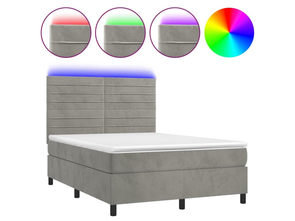 vidaXL Posteľ boxsping s matracom a LED bledosivá 140x200 cm zamat