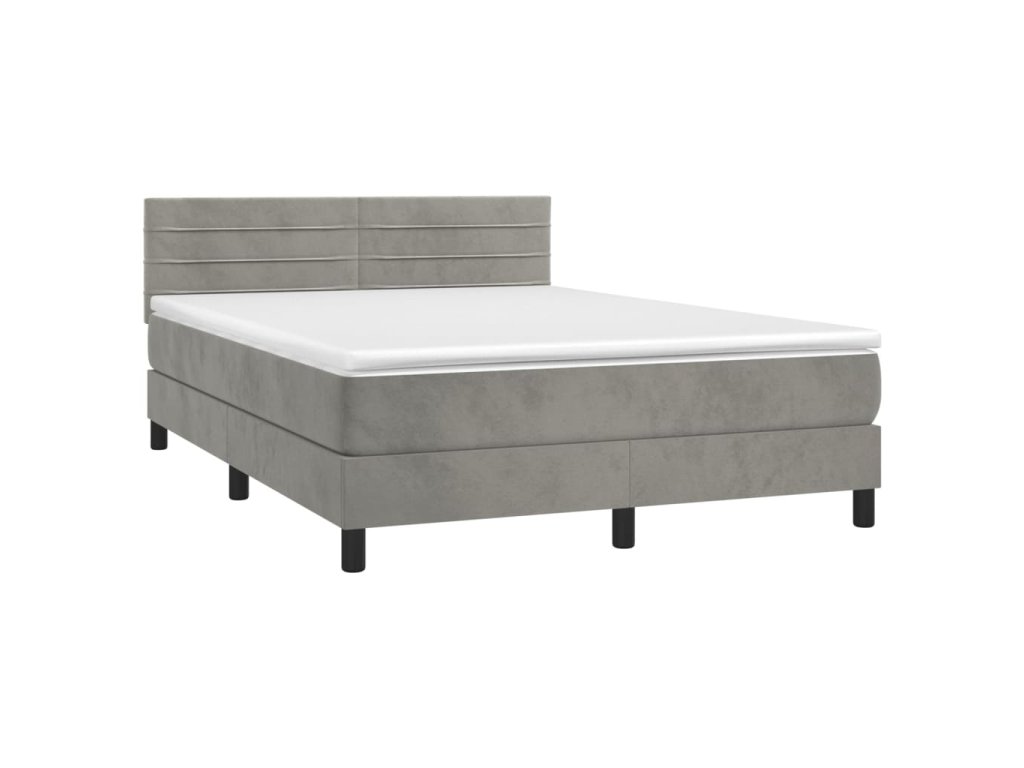 vidaXL Posteľ boxsping s matracom a LED bledosivá 140x200 cm zamat