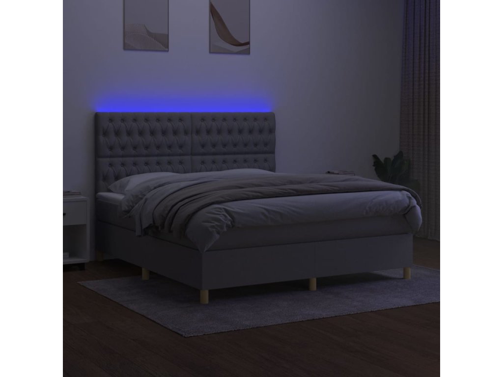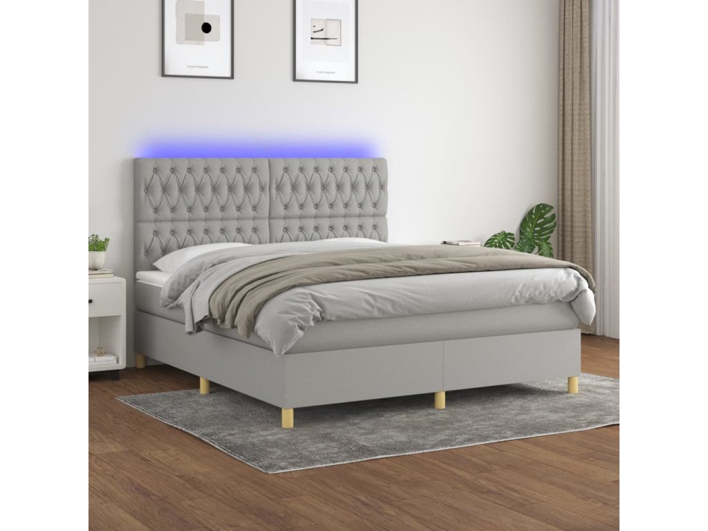 vidaXL Posteľ boxsping s matracom a LED bledosivá 160x200 cm látka