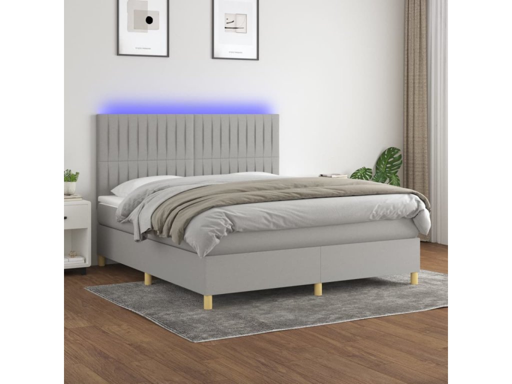 vidaXL Posteľ boxsping s matracom a LED bledosivá 160x200 cm látka