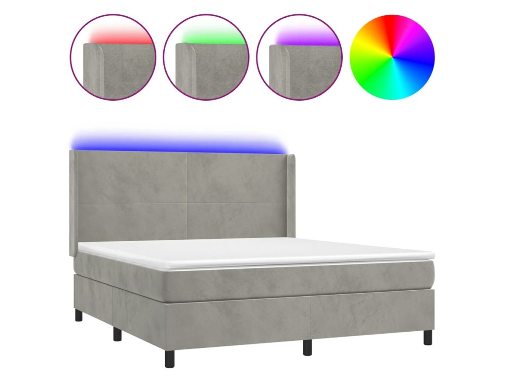 vidaXL Posteľ boxsping s matracom a LED bledosivá 160x200 cm zamat