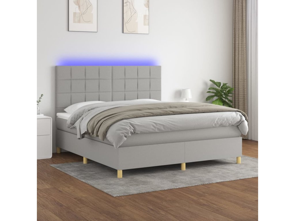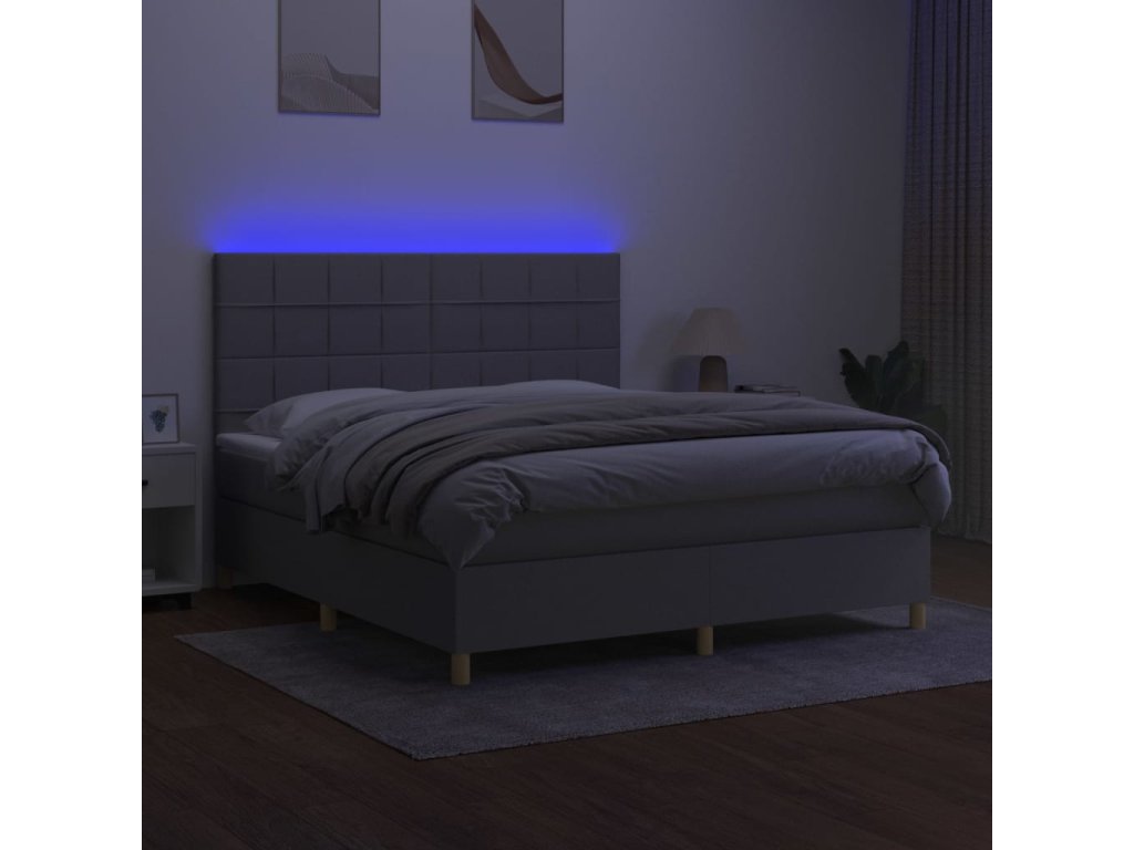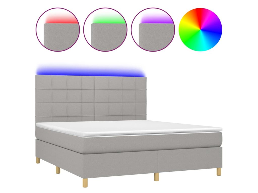 vidaXL Posteľ boxsping s matracom a LED bledosivá 180x200 cm látka