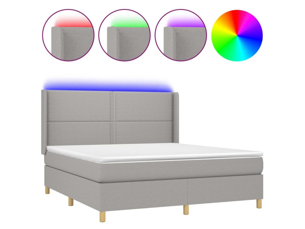 vidaXL Posteľ boxsping s matracom a LED bledosivá 180x200 cm látka