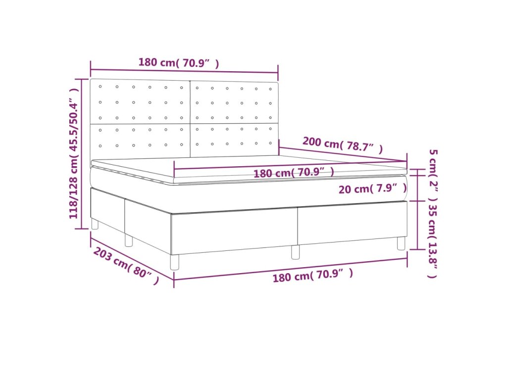 vidaXL Posteľ boxsping s matracom a LED bledosivá 180x200 cm zamat