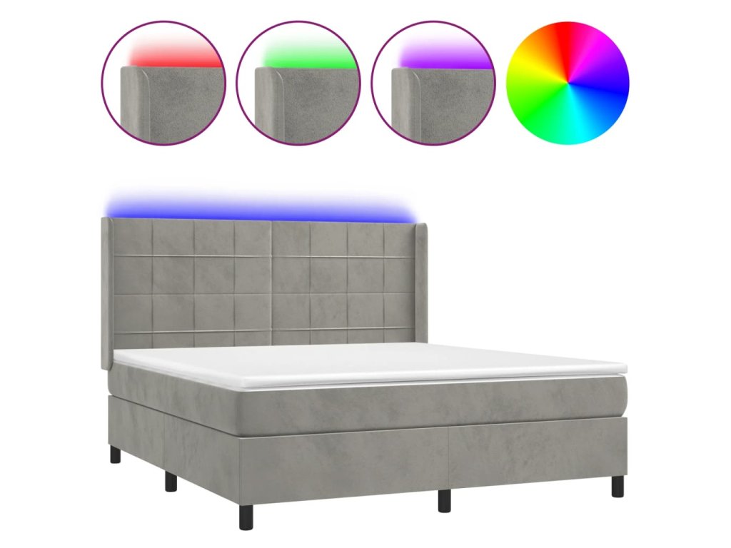 vidaXL Posteľ boxsping s matracom a LED bledosivá 180x200 cm zamat