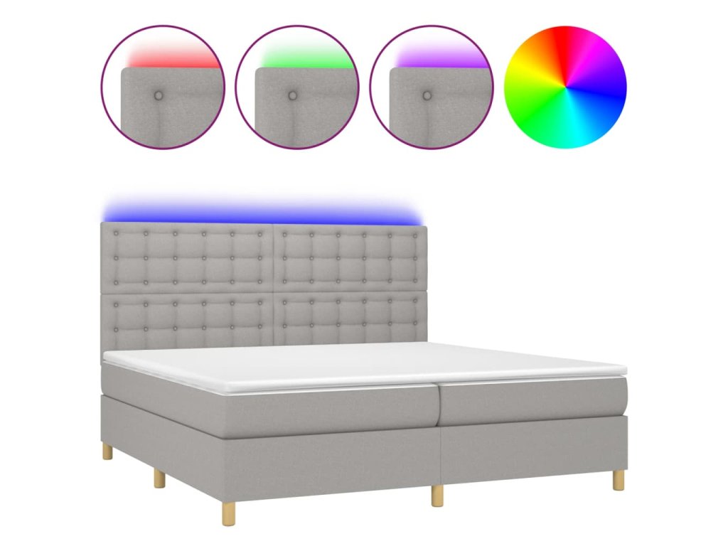 vidaXL Posteľ boxsping s matracom a LED bledosivá 200x200 cm látka