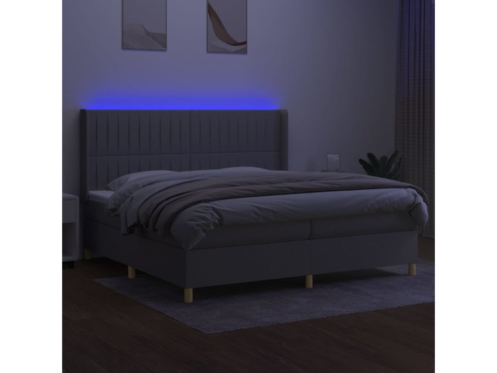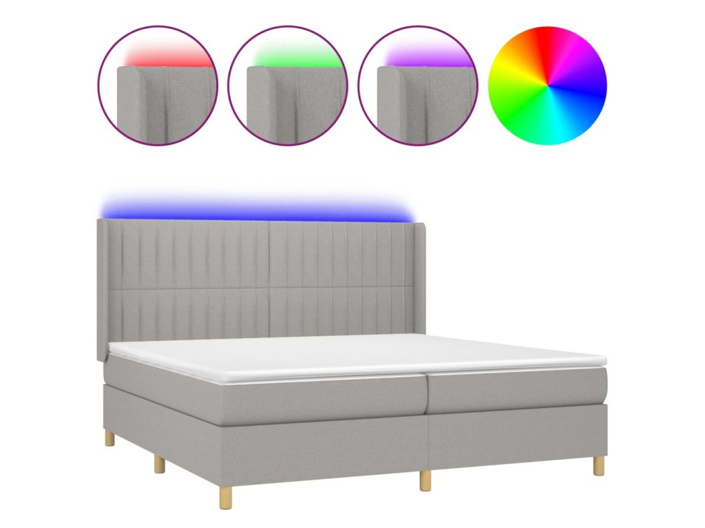 vidaXL Posteľ boxsping s matracom a LED bledosivá 200x200 cm látka