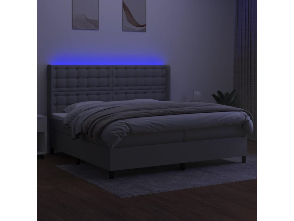 vidaXL Posteľ boxsping s matracom a LED bledosivá 200x200 cm látka