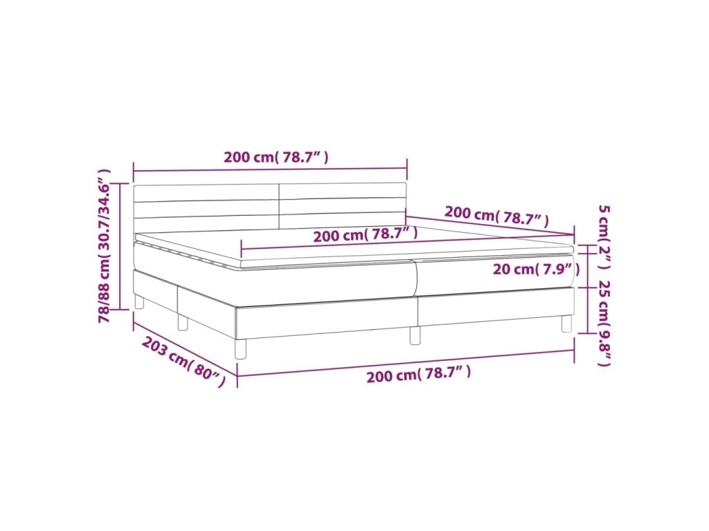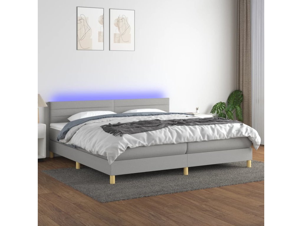 vidaXL Posteľ boxsping s matracom a LED bledosivá 200x200 cm látka