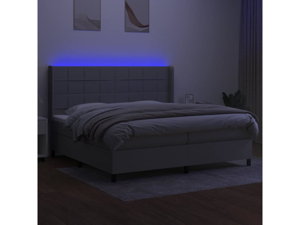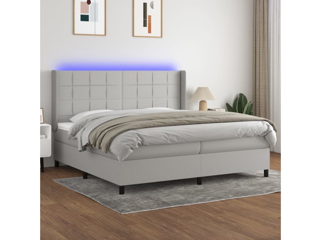 vidaXL Posteľ boxsping s matracom a LED bledosivá 200x200 cm látka