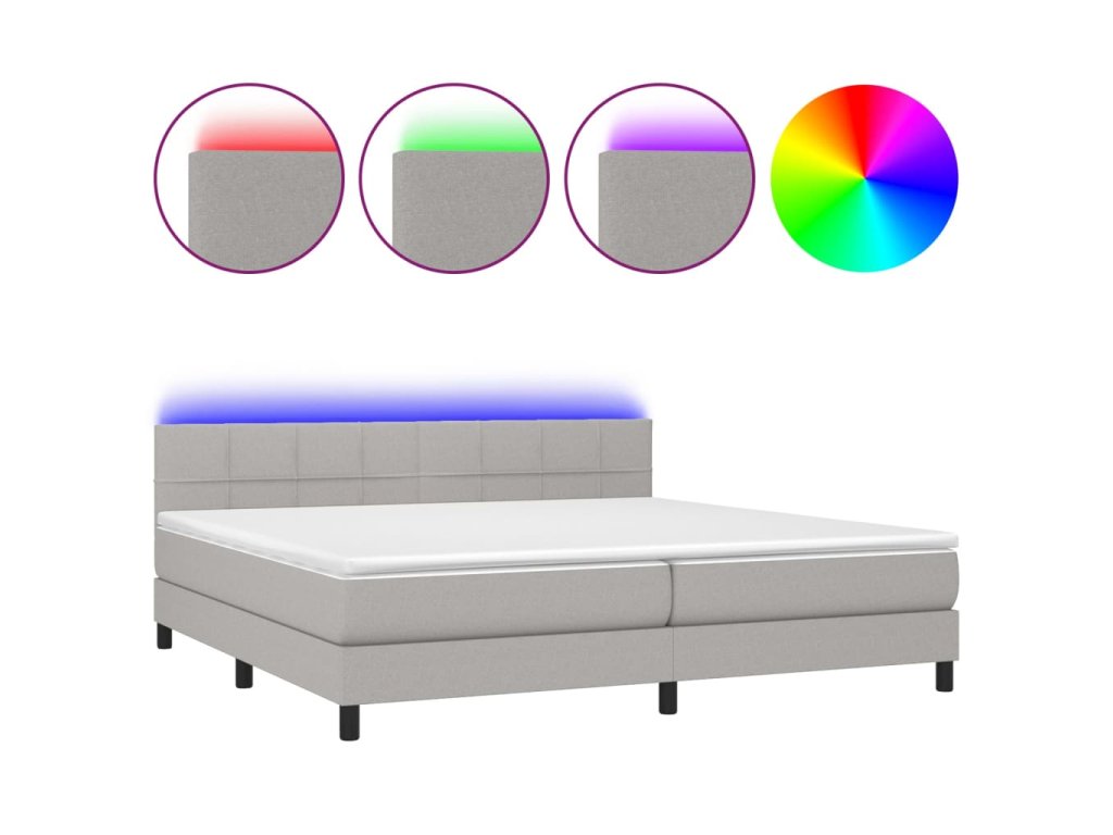 vidaXL Posteľ boxsping s matracom a LED bledosivá 200x200 cm látka