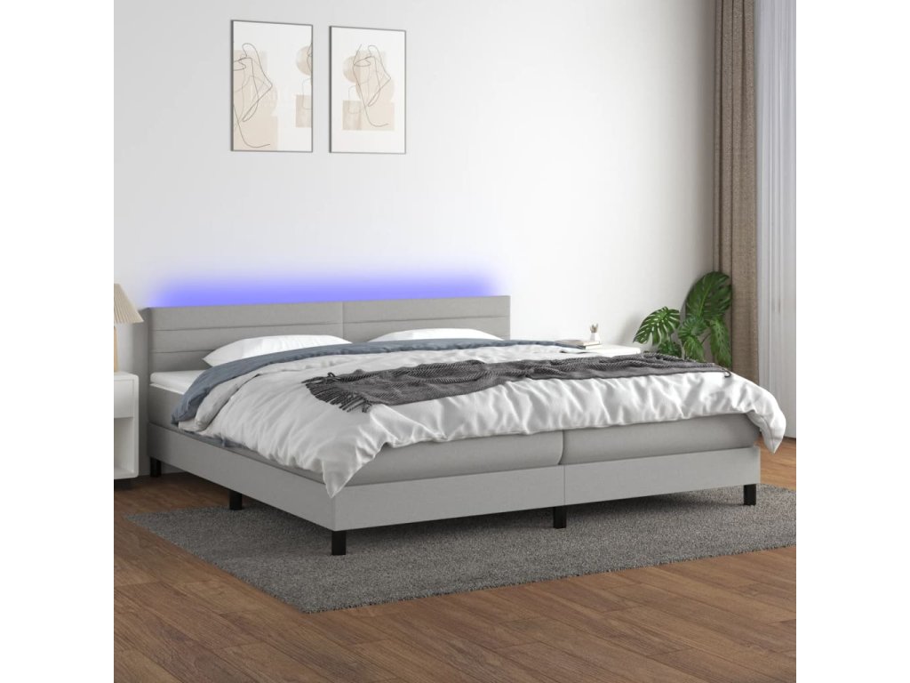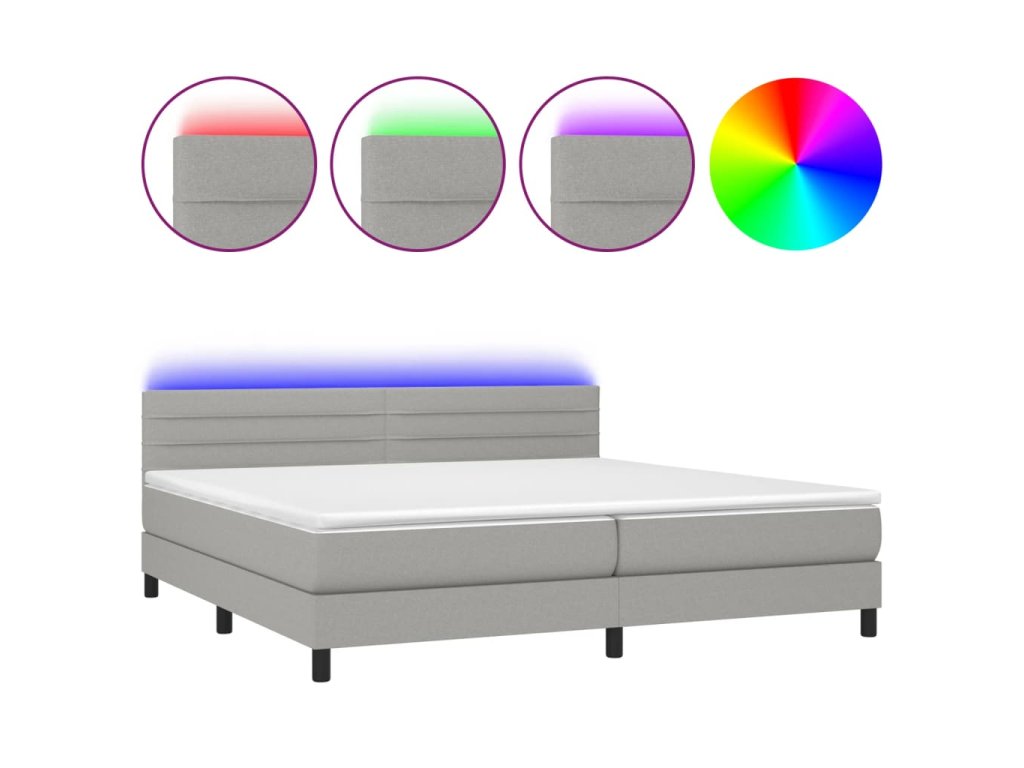vidaXL Posteľ boxsping s matracom a LED bledosivá 200x200 cm látka