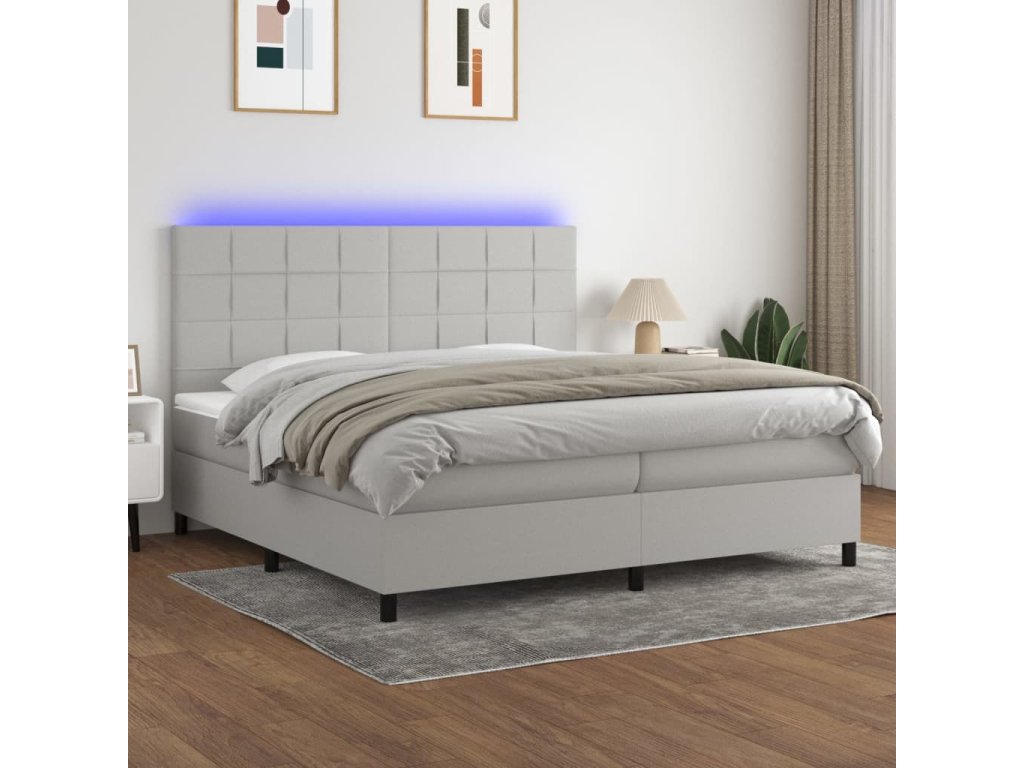 vidaXL Posteľ boxsping s matracom a LED bledosivá 200x200 cm látka