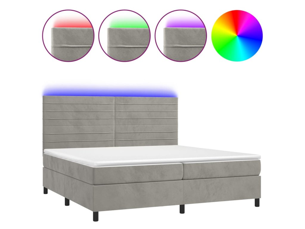 vidaXL Posteľ boxsping s matracom a LED bledosivá 200x200 cm zamat