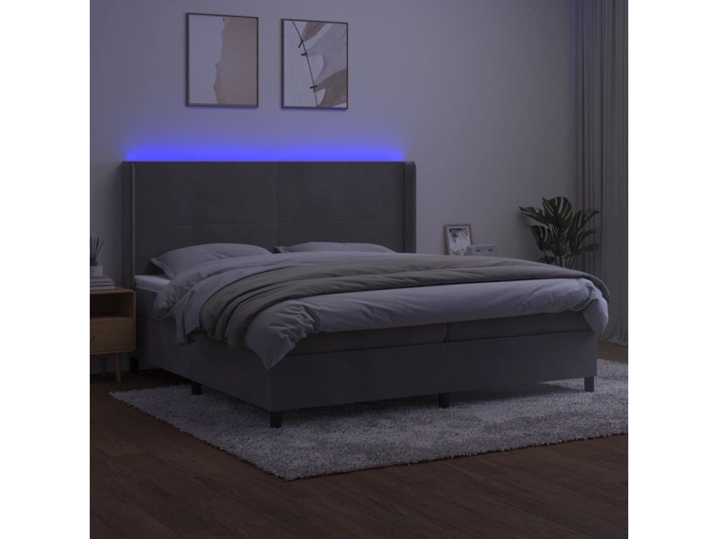 vidaXL Posteľ boxsping s matracom a LED bledosivá 200x200 cm zamat