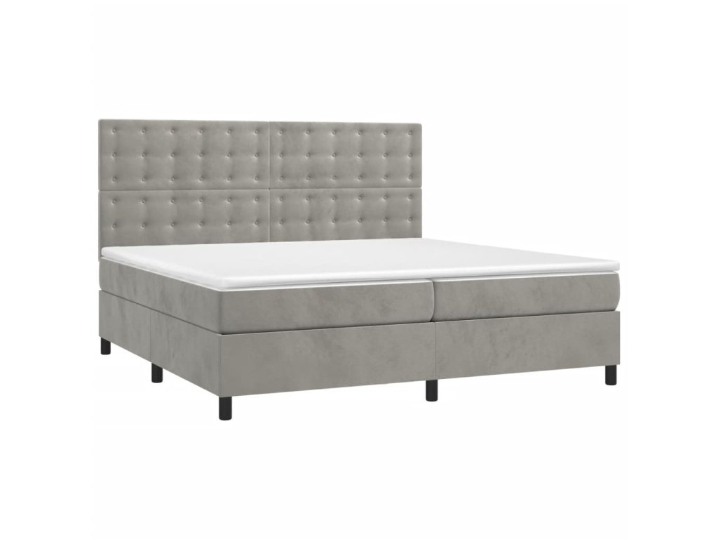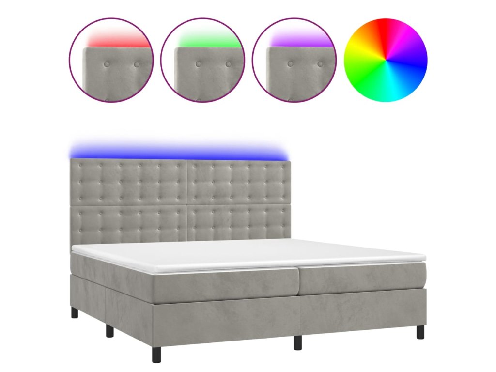 vidaXL Posteľ boxsping s matracom a LED bledosivá 200x200 cm zamat