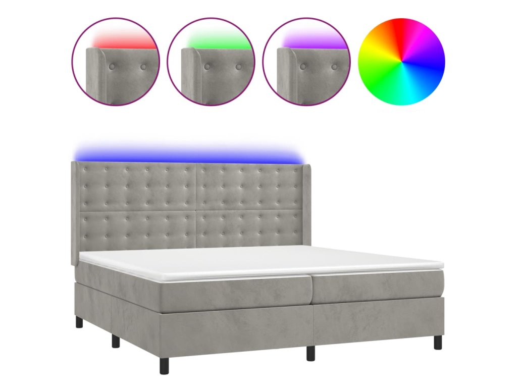 vidaXL Posteľ boxsping s matracom a LED bledosivá 200x200 cm zamat