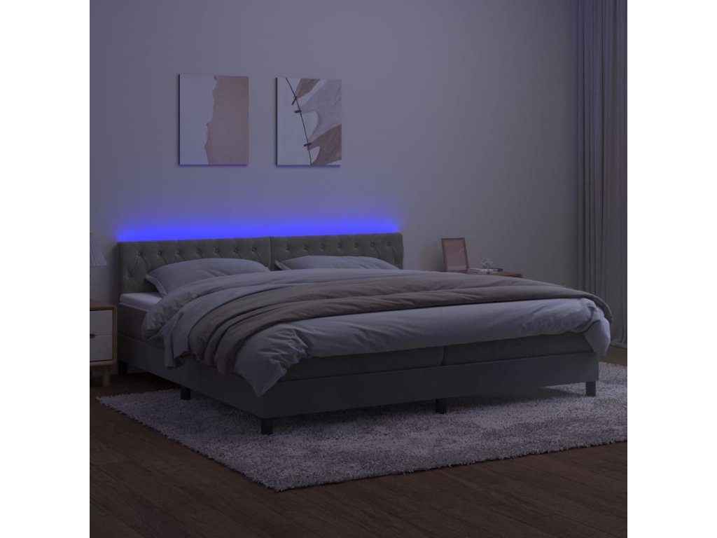 vidaXL Posteľ boxsping s matracom a LED bledosivá 200x200 cm zamat