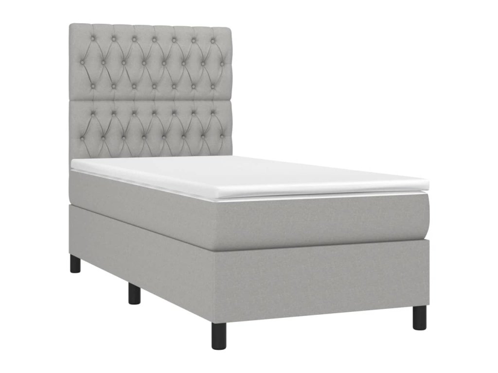vidaXL Posteľ boxsping s matracom a LED bledosivá 90x190 cm látka