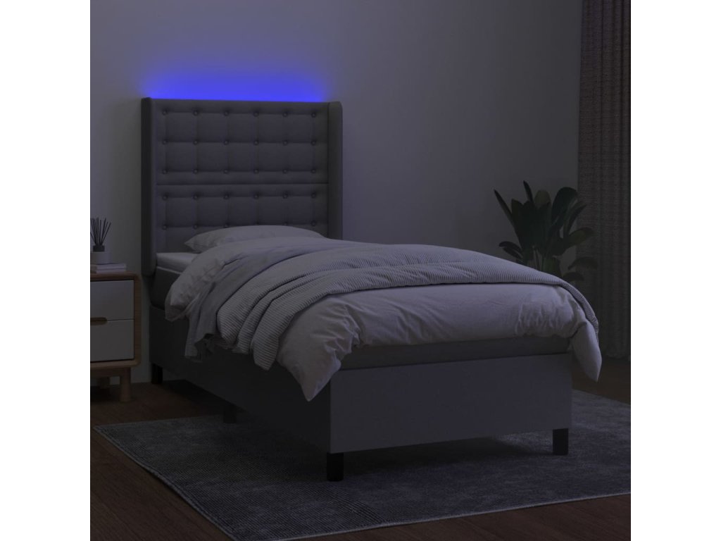 vidaXL Posteľ boxsping s matracom a LED bledosivá 90x190 cm látka