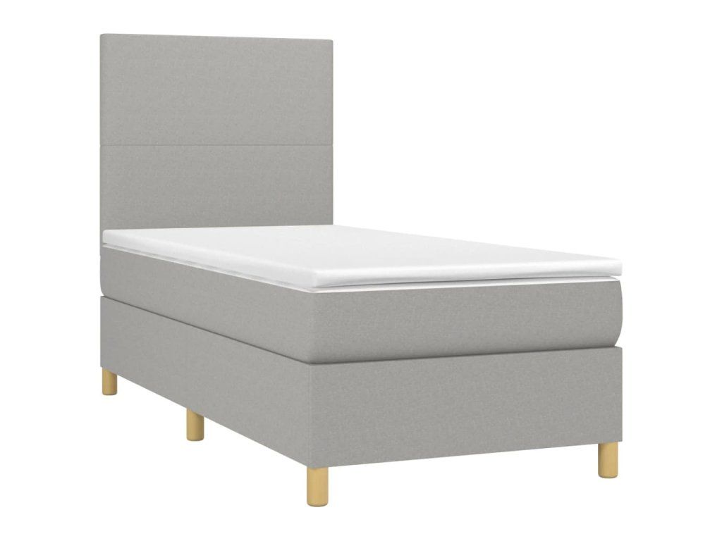 vidaXL Posteľ boxsping s matracom a LED bledosivá 90x200 cm látka