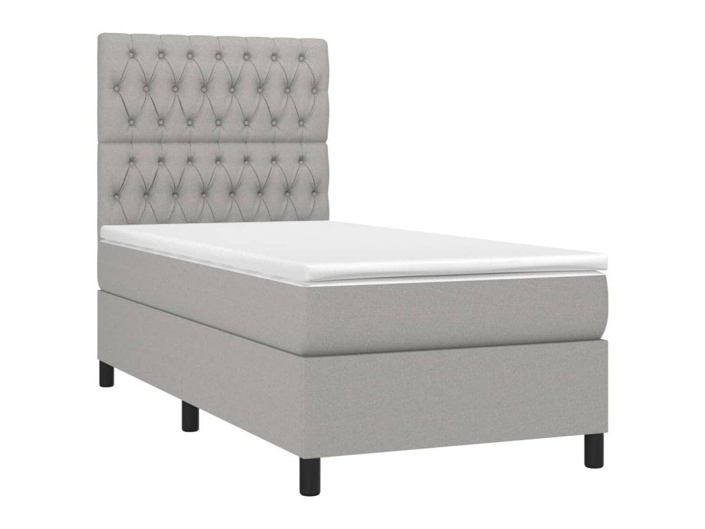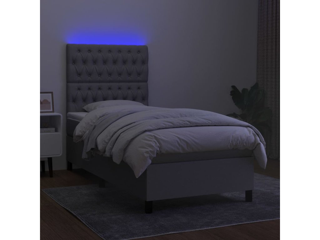 vidaXL Posteľ boxsping s matracom a LED bledosivá 90x200 cm látka