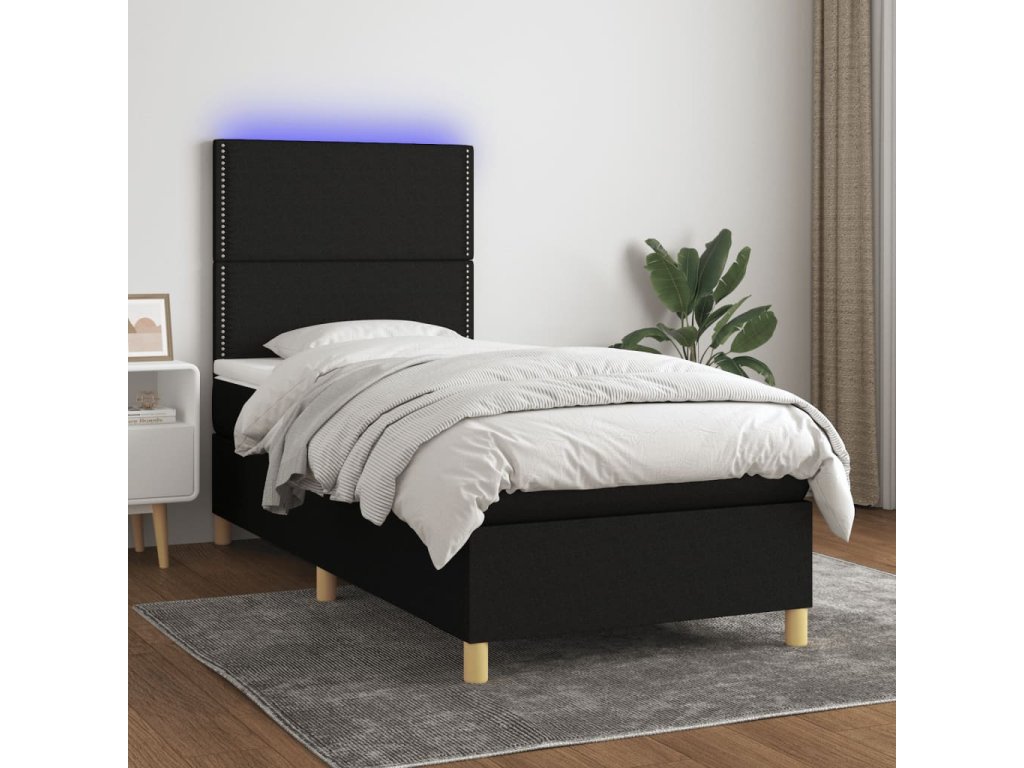 vidaXL Posteľ boxsping s matracom a LED čierna 100x200 cm látka