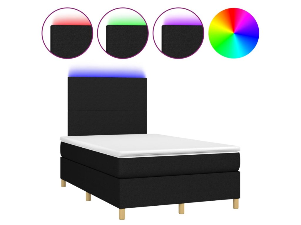 vidaXL Posteľ boxsping s matracom a LED čierna 120x200 cm látka