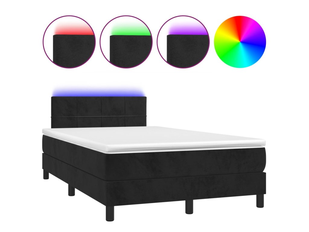 vidaXL Posteľ boxsping s matracom a LED čierna 120x200 cm zamat