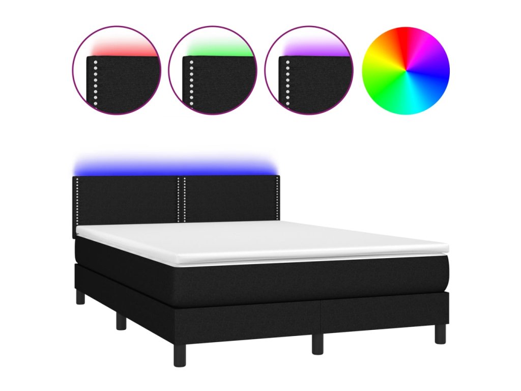 vidaXL Posteľ boxsping s matracom a LED čierna 140x190 cm látka