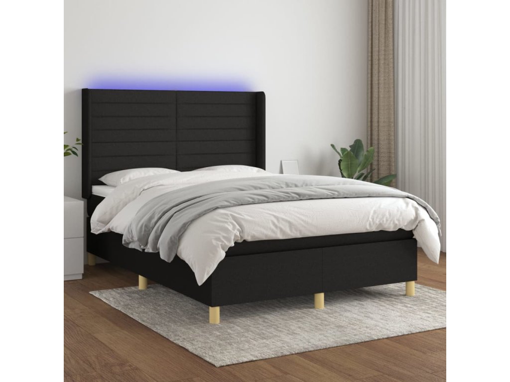 vidaXL Posteľ boxsping s matracom a LED čierna 140x190 cm látka