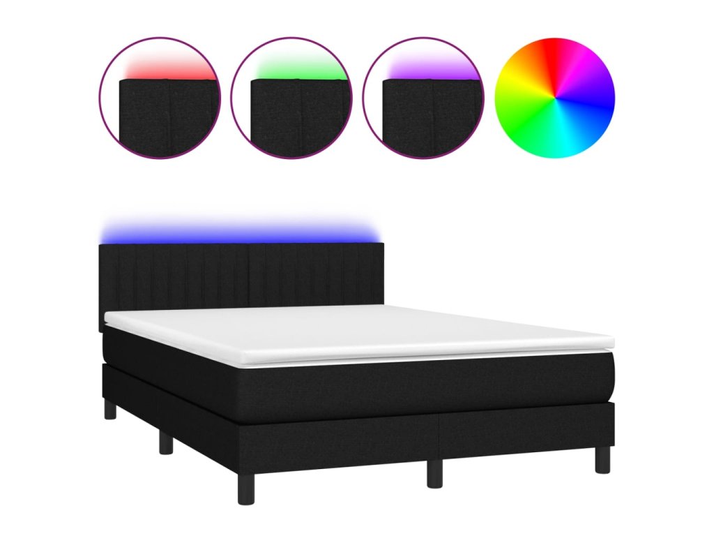 vidaXL Posteľ boxsping s matracom a LED čierna 140x190 cm látka