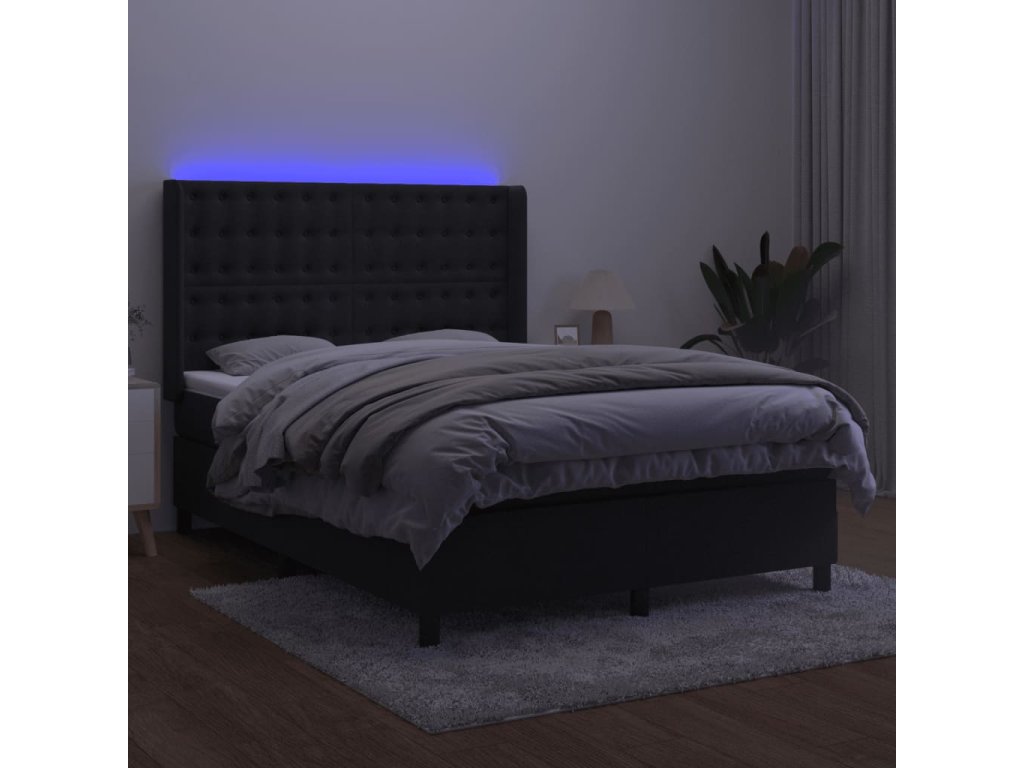 vidaXL Posteľ boxsping s matracom a LED čierna 140x190 cm zamat