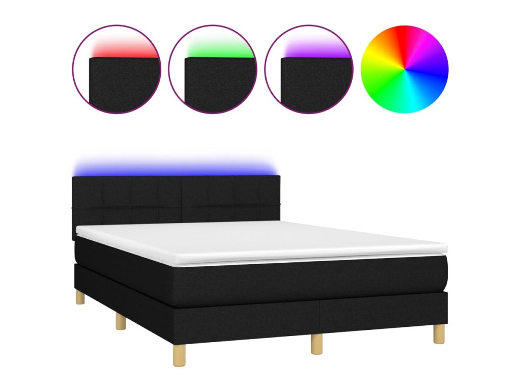 vidaXL Posteľ boxsping s matracom a LED čierna 140x200 cm látka