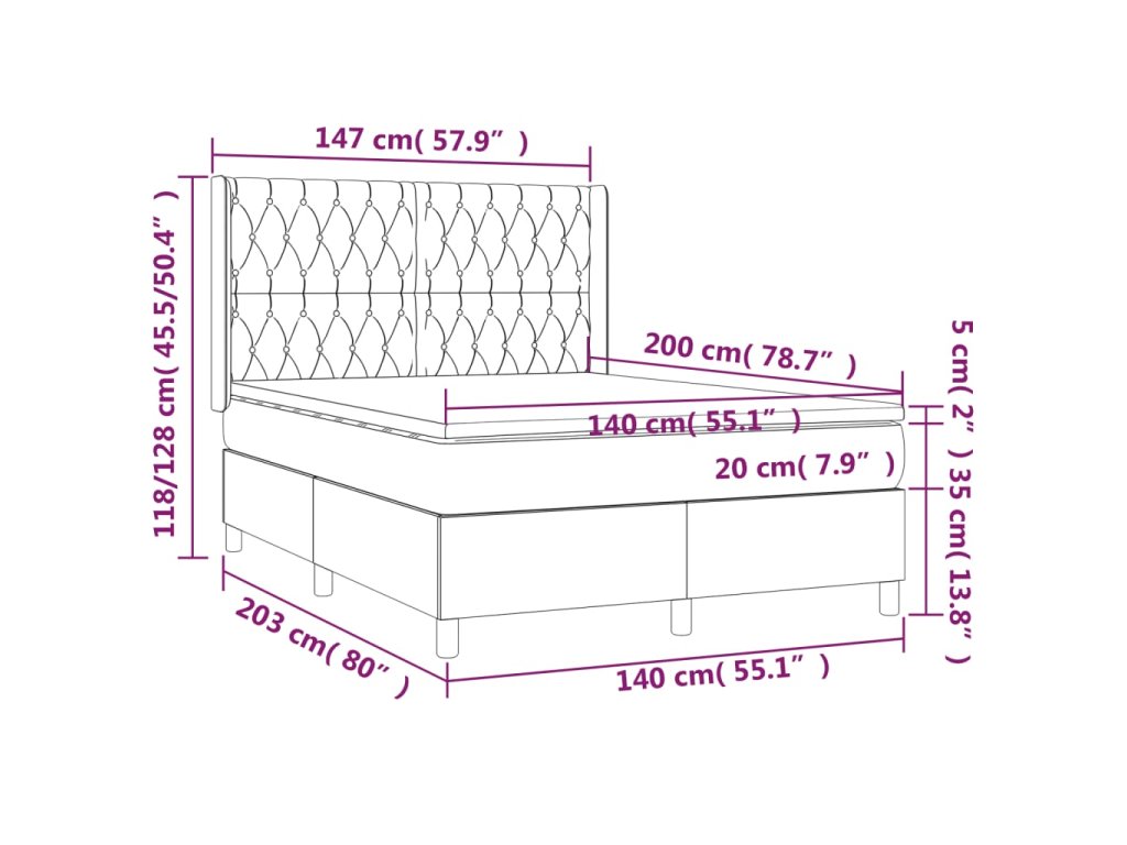 - Celkové rozmery: 203 x 147 x 118/128 cm (D x Š x V)