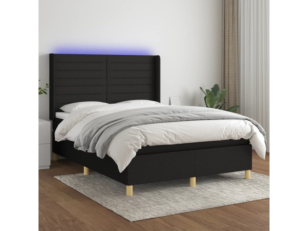 vidaXL Posteľ boxsping s matracom a LED čierna 140x200 cm látka