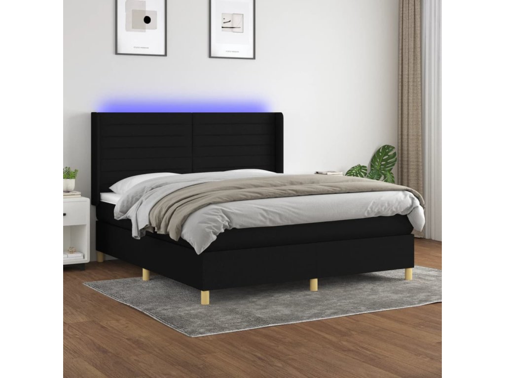 vidaXL Posteľ boxsping s matracom a LED čierna 160x200 cm látka