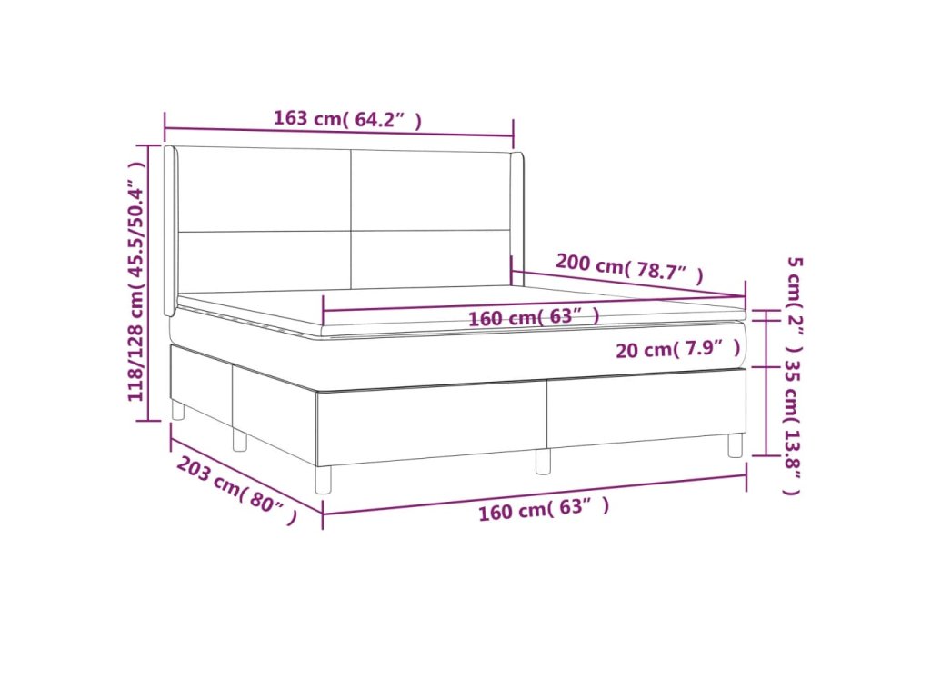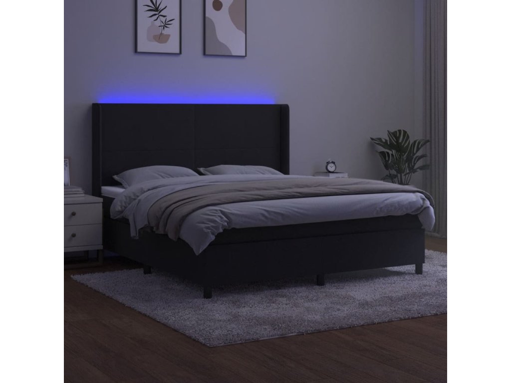 vidaXL Posteľ boxsping s matracom a LED čierna 160x200 cm zamat
