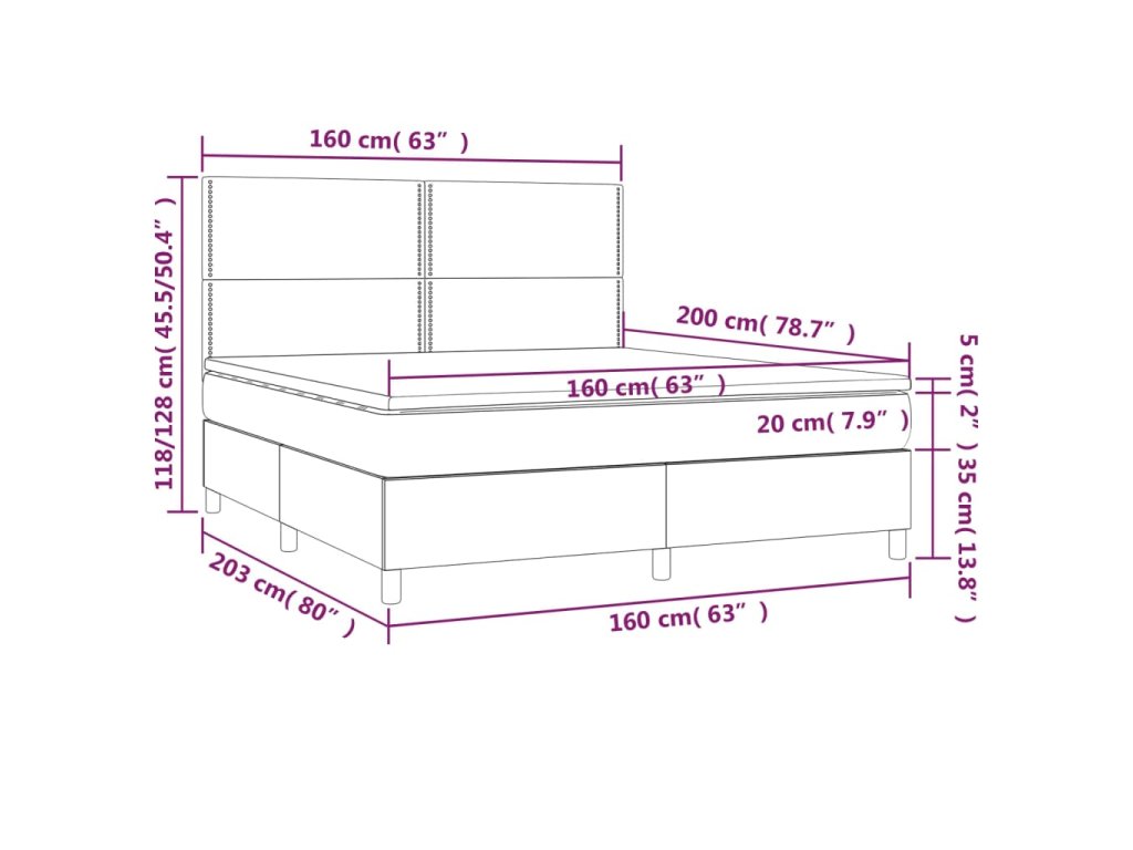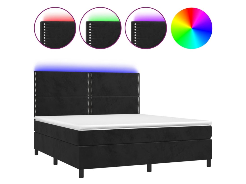 vidaXL Posteľ boxsping s matracom a LED čierna 160x200 cm zamat