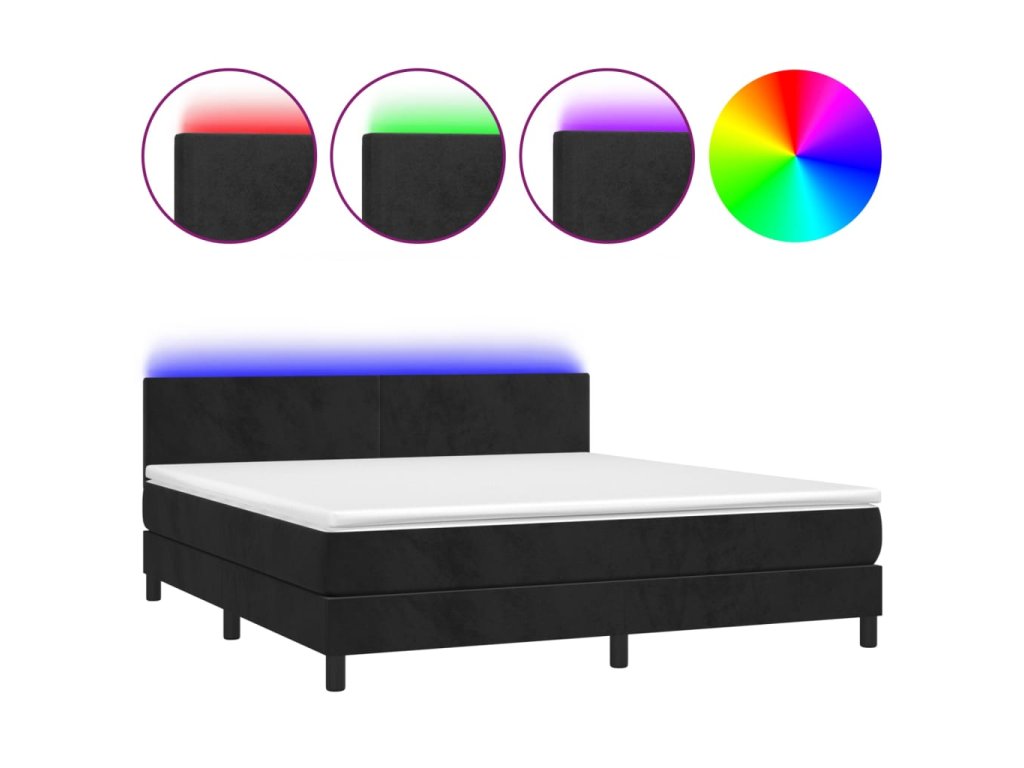 vidaXL Posteľ boxsping s matracom a LED čierna 160x200 cm zamat