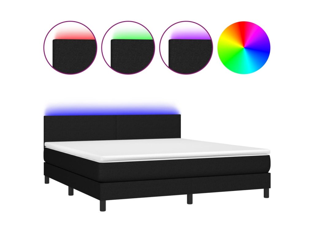 vidaXL Posteľ boxsping s matracom a LED čierna 180x200 cm látka