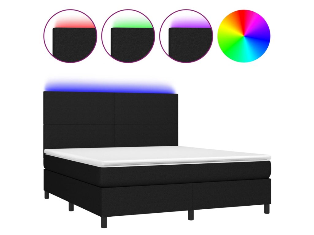 vidaXL Posteľ boxsping s matracom a LED čierna 180x200 cm látka