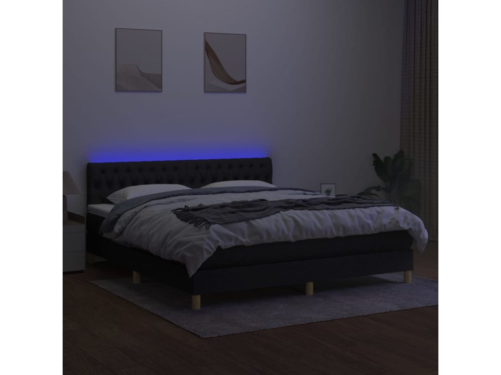 vidaXL Posteľ boxsping s matracom a LED čierna 180x200 cm látka